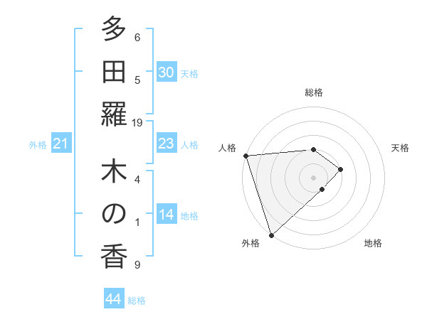 多田羅 木の香さんを姓名の画数から五運を鑑定