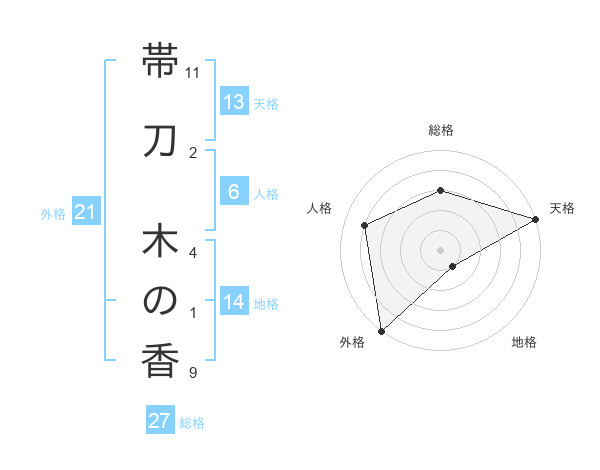 帯刀 木の香さんを姓名の画数から五運を鑑定