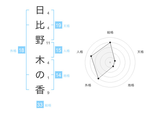 日比野 木の香さんの総格は33画の4点