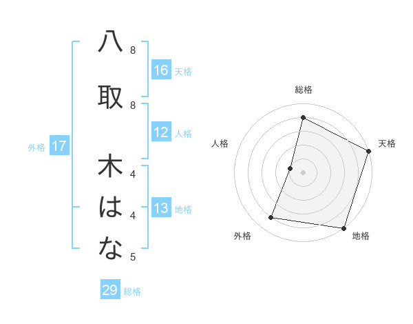 八取 木はなさんの総格は29画の4点!