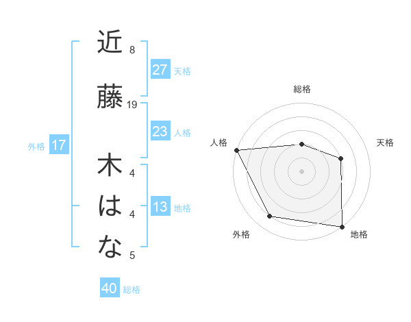 近藤 木はなさんを姓名の画数から五運を鑑定