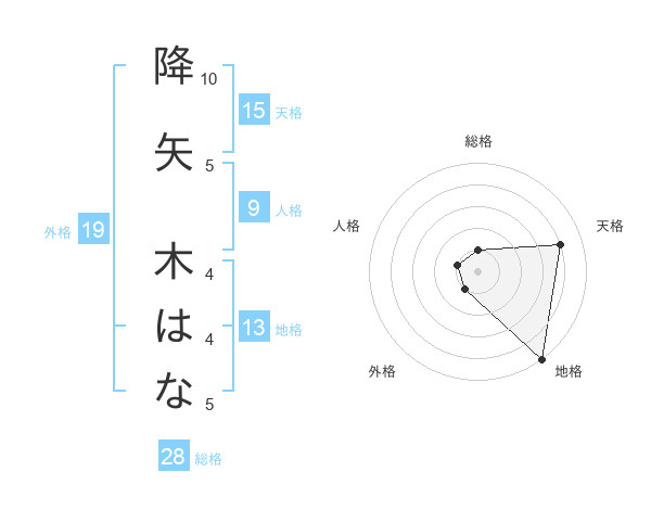 降矢 木はなさんの地格は13画の5点!