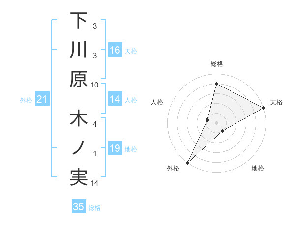 下川原 木ノ実さんを姓名の画数から五運を鑑定