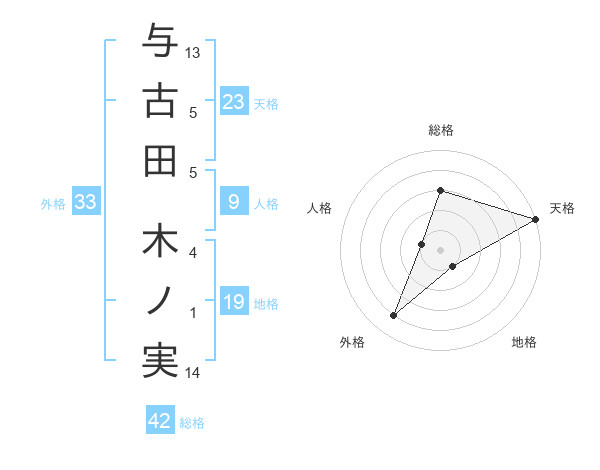 与古田 木ノ実さんを姓名の画数から五運を鑑定
