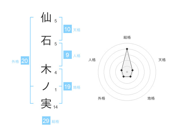 仙石 木ノ実さんを姓名の画数から五運を鑑定
