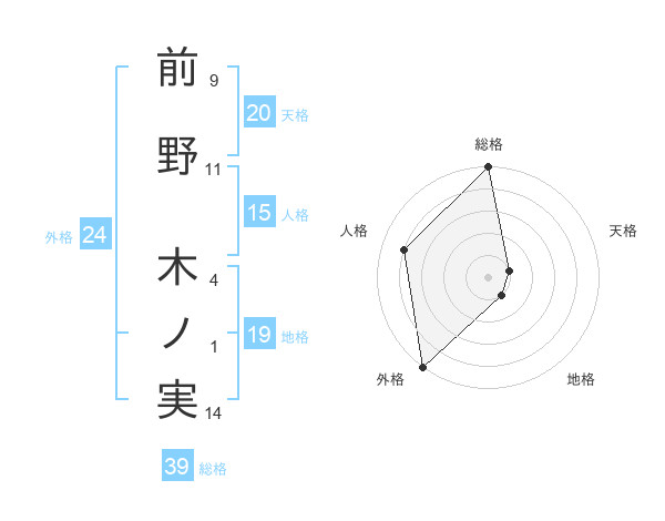 前野 木ノ実さんを姓名の画数から五運を鑑定