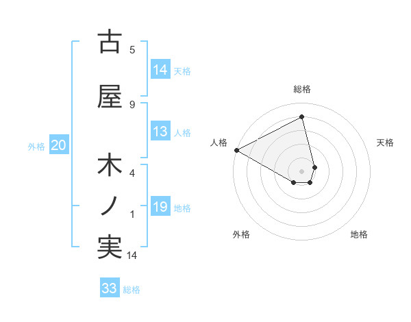 古屋 木ノ実さんを姓名の画数から五運を鑑定