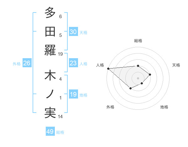 多田羅 木ノ実さんを姓名の画数から五運を鑑定