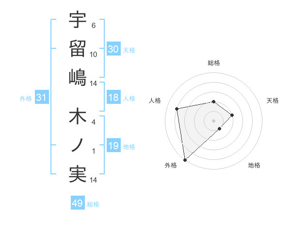 宇留嶋 木ノ実さんを姓名の画数から五運を鑑定