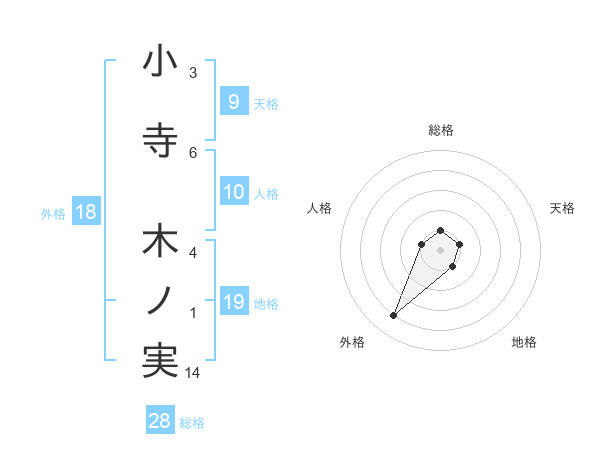 小寺 木ノ実さんの総格は28画の1点!