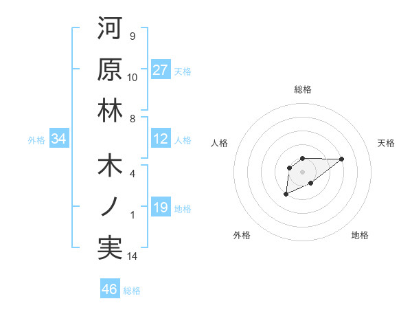 河原林 木ノ実さんを姓名の画数から五運を鑑定