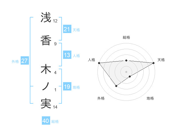 浅香 木ノ実さんの天格は21画の5点!