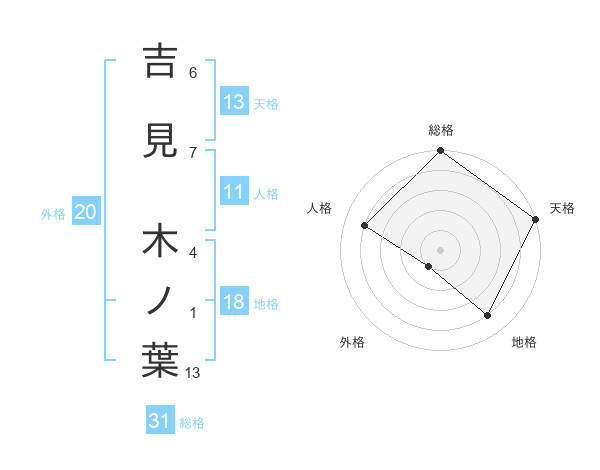 吉見 木ノ葉さんを姓名の画数から五運を鑑定