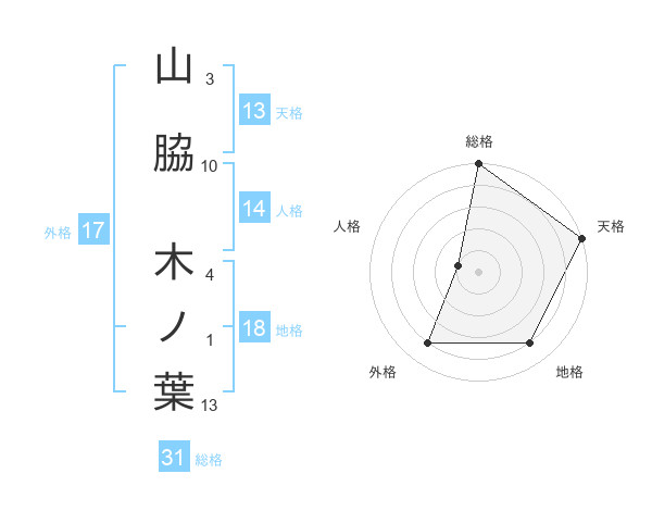 山脇 木ノ葉さんを姓名の画数から五運を鑑定