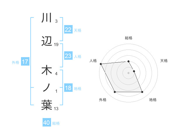 川辺 木ノ葉さんを姓名の画数から五運を鑑定