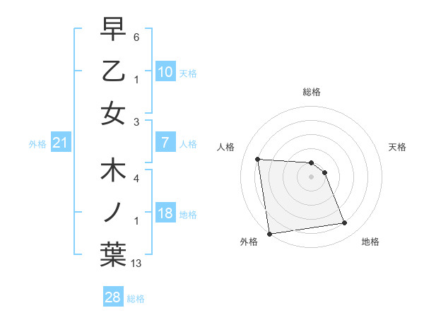 早乙女 木ノ葉さんを姓名の画数から五運を鑑定