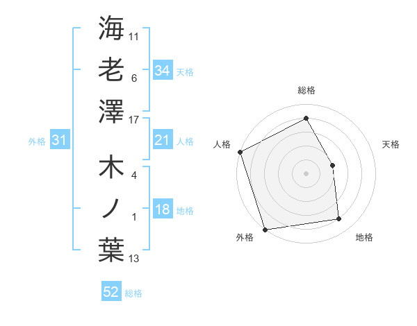 海老澤 木ノ葉さんの外格は31画の5点!