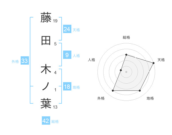 藤田 木ノ葉さんを姓名の画数から五運を鑑定