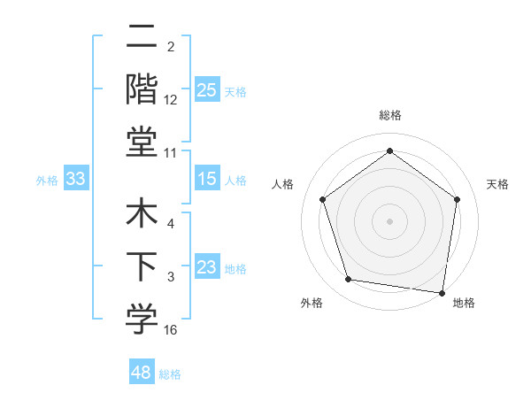 二階堂 木下学さんの総格は48画の4点