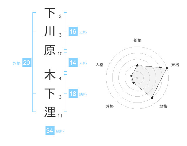 下川原 木下浬さんを姓名の画数から五運を鑑定