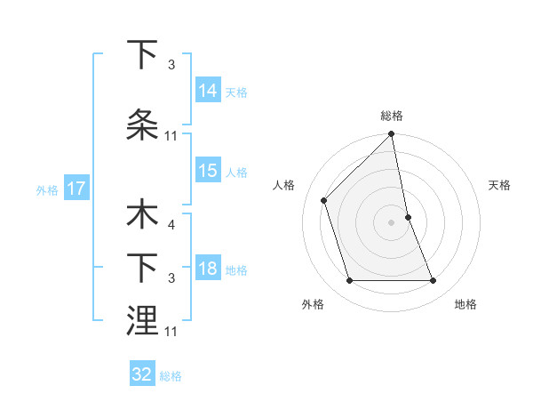 下条 木下浬さんの総格は32画の5点