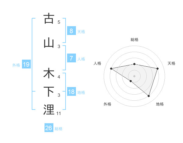 古山 木下浬さんの総格は26画の2点!