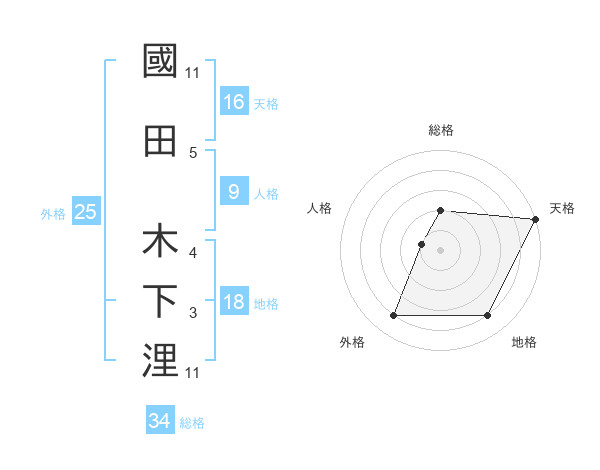 國田 木下浬さんの総格は34画の2点!