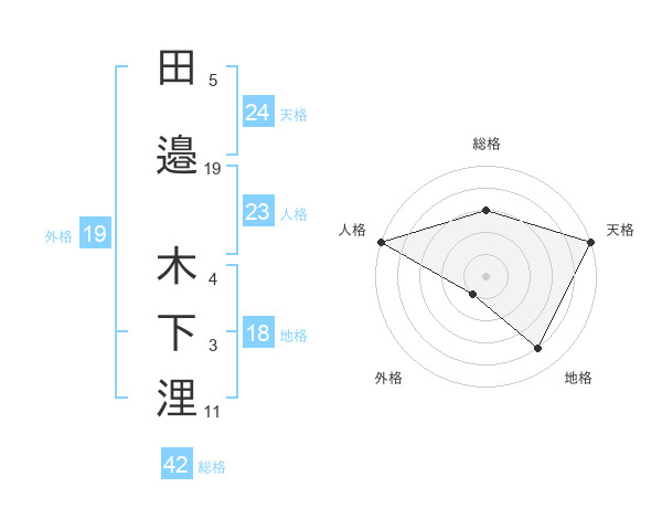 田邉 木下浬さんを姓名の画数から五運を鑑定