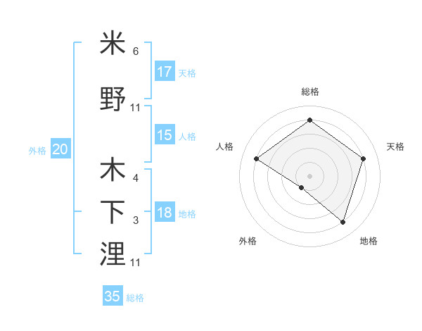 米野 木下浬さんを姓名の画数から五運を鑑定