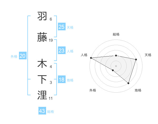 羽藤 木下浬さんを姓名の画数から五運を鑑定