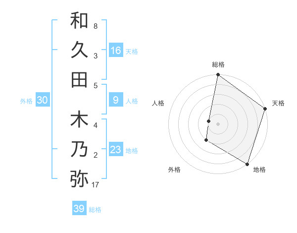 和久田 木乃弥さんを姓名の画数から五運を鑑定