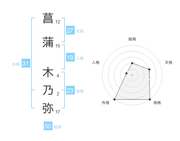 菖蒲 木乃弥さんの外格は31画の5点!