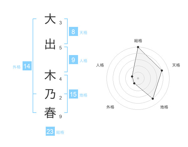 大出 木乃春さんの総格は23画の5点!