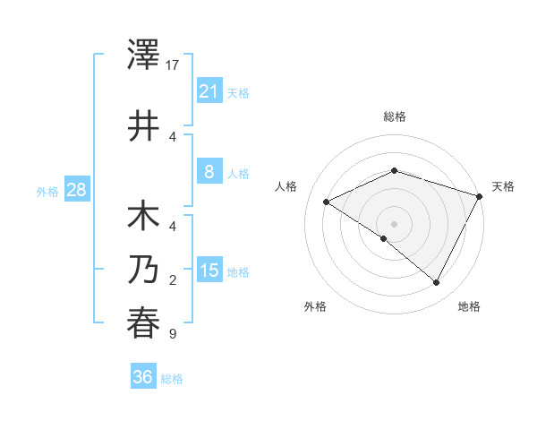 澤井 木乃春さんを姓名の画数から五運を鑑定