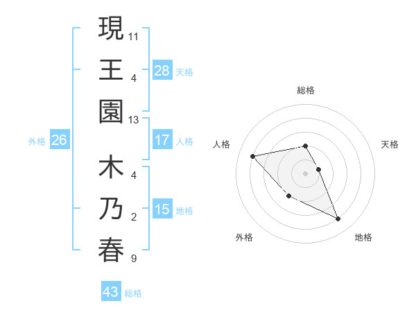 現王園 木乃春さんを姓名の画数から五運を鑑定