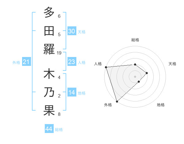 多田羅 木乃果さんの総格は44画の2点!
