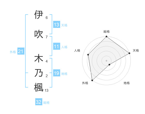 伊吹 木乃楓さんを姓名の画数から五運を鑑定
