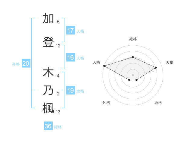 加登 木乃楓さんを姓名の画数から五運を鑑定