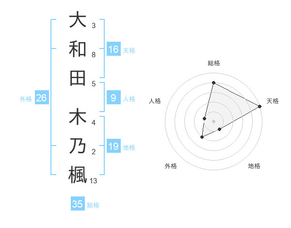 大和田 木乃楓さんの天格は16画の5点!
