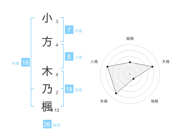 小方 木乃楓さんを姓名の画数から五運を鑑定