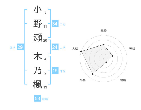 小野瀬 木乃楓さんの総格は53画の3点!