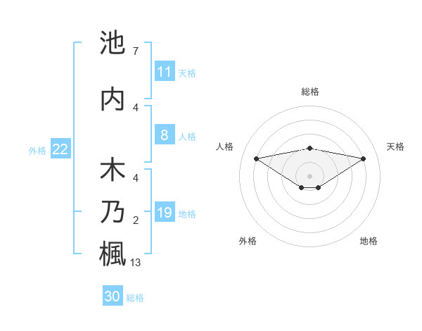 池内 木乃楓さんの外格は22画の1点!