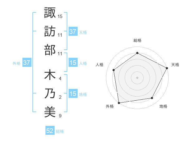諏訪部 木乃美さんを姓名の画数から五運を鑑定