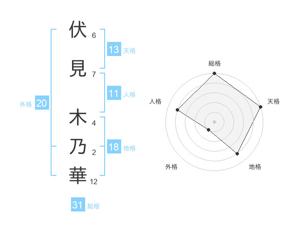 伏見 木乃華さんの天格は13画の5点!