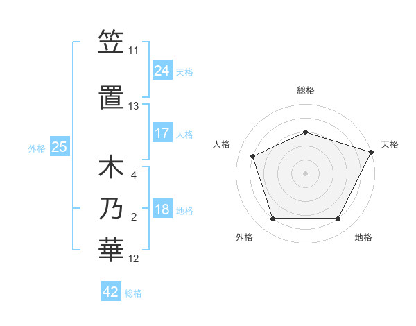笠置 木乃華さんの天格は24画の5点!