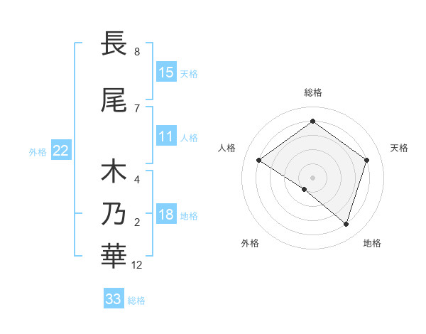 長尾 木乃華さんを姓名の画数から五運を鑑定