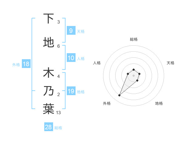 下地 木乃葉さんを姓名の画数から五運を鑑定