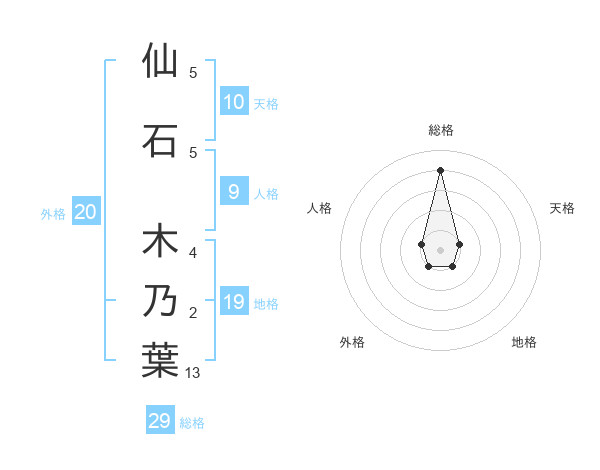 仙石 木乃葉さんを姓名の画数から五運を鑑定