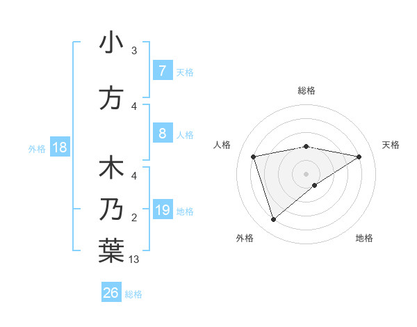 小方 木乃葉さんを姓名の画数から五運を鑑定