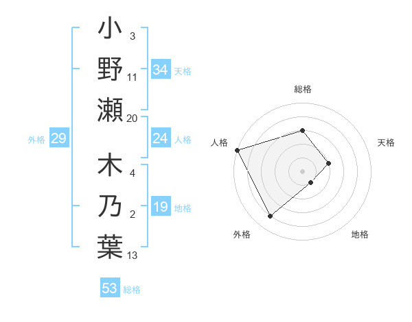 小野瀬 木乃葉さんを姓名の画数から五運を鑑定